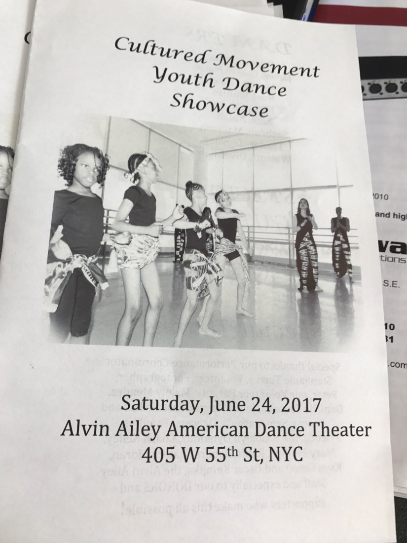 Cultured Movement does fundraisers and showcases. So, the girls can show alll their hard work to their family at the Alvin Aliey company. We set it up for their parents like being tape and pictures. Then, fundraiser was at Harlem Shake, were we gave out free books and the girls did a little dance. Sherema used my ideas at the showcases and fundraisers.( thankful for here.)