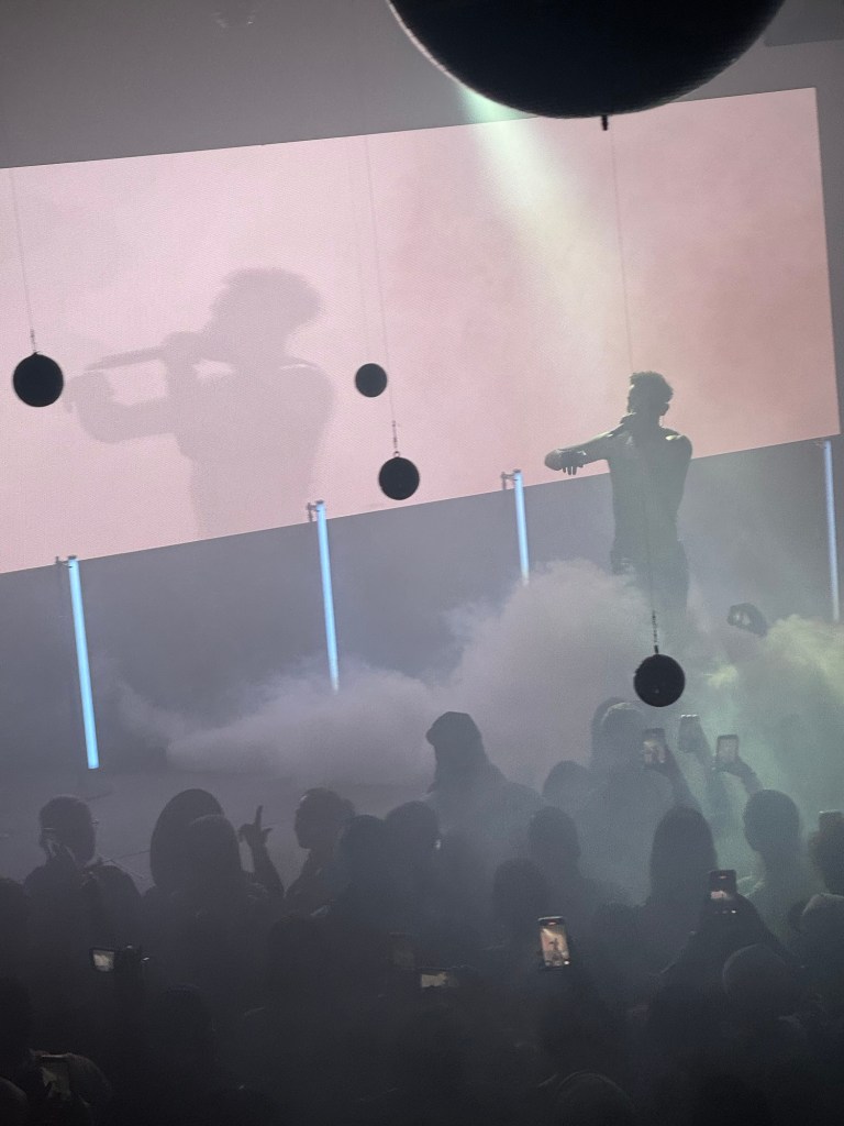 The venue was Elsewhere in Brooklyn intimate, packed, and alive. Disco balls hung from the ceiling, lights flashing everywhere blue, red, strobes, smoke it felt like stepping into a whole different world. My forever friend knew every word. She was dancing, singing, living in it. And me? Right there with her.